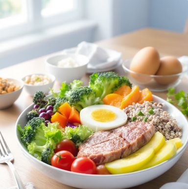- 아침: 단백질·섬유질 중심으로