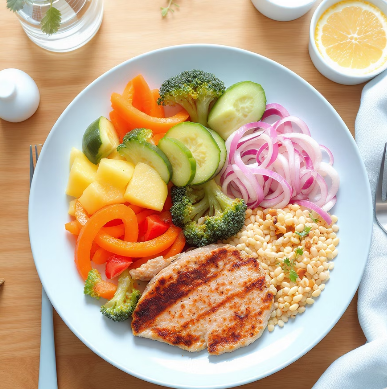 - 점심: 현미밥 + 닭가슴살 또는 두부 + 다양한 채소